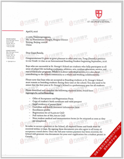 下面附上我們全國獨家錄取的十年級的小關同學的Offer: