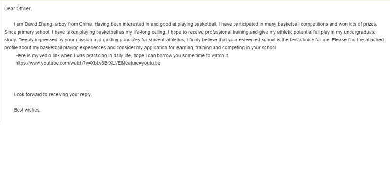 10年級時偶然的機會找到萬佳留學(全國首家NCAA 專題申請),想申請美國NCAA,期望成為一名職業(yè)籃球運動員,將David的履歷,獲獎榮譽,球技,成績等各方面綜合評估后,萬佳NCAA 專題申請組全面開展申請,為其聯(lián)系有意向大學的籃球試訓,經(jīng)過近兩年的跟進,收到多名Coach的籃球試訓機會。最終為David拿到理想大學的錄取。