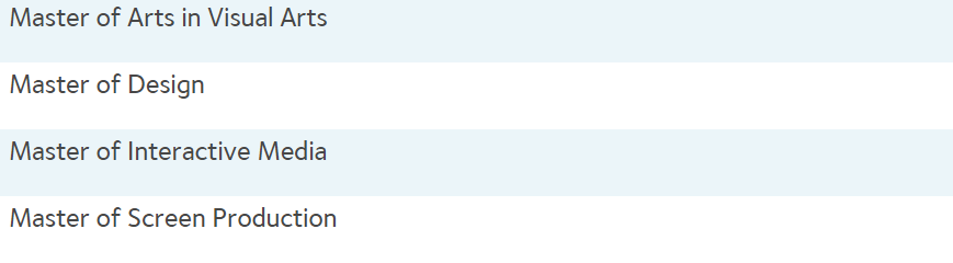 四個專業(yè)當(dāng)中,除了Master of Screen Production申請的時候需要提交作品集,其余三個專業(yè)都不需要作品集,且不需要專業(yè)背景。Master of Design申請的時候還需要提交500字的個人陳述,解釋你為什么讀這個專業(yè)。