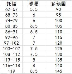 多鄰國(guó)與托福雅思成績(jī)對(duì)應(yīng)表