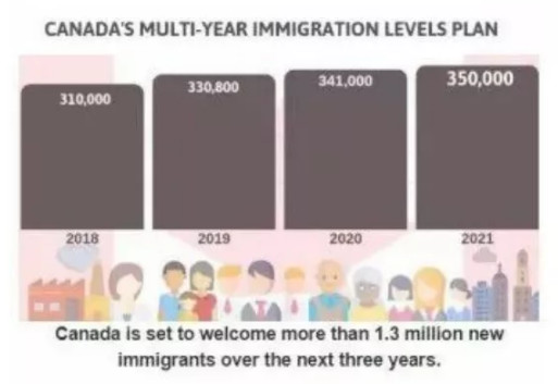 根據(jù)加拿大《2019-2021年移民計(jì)劃》顯示,聯(lián)邦政府的目標(biāo)是到2020年新增341,000名移民。但是這一目標(biāo)已于去年實(shí)現(xiàn),加拿大今年可能會(huì)再次超越。實(shí)際上該計(jì)劃顯示加拿大將在未來三年內(nèi)歡迎超過130萬新移民。