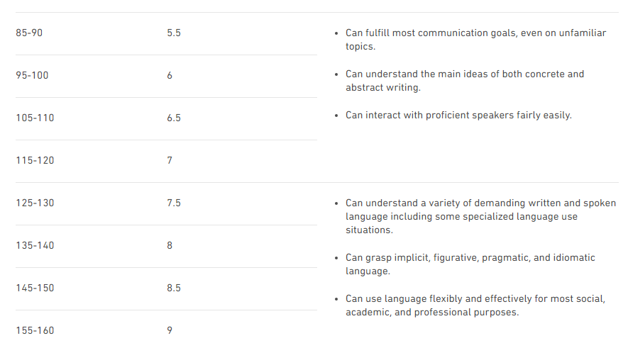 Duolingo考試的分?jǐn)?shù),分4個級別