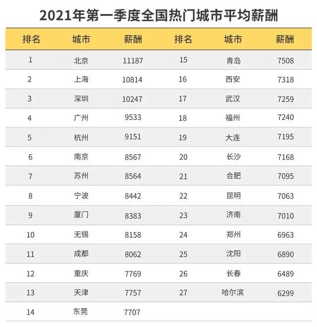 一線城市中,北京以「11187」的高薪穩(wěn)居第一,上海第二,深圳薪資與上海幾乎持平,也突破了10k。