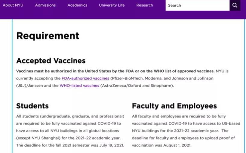 紐約大學(xué):全員接種疫苗!