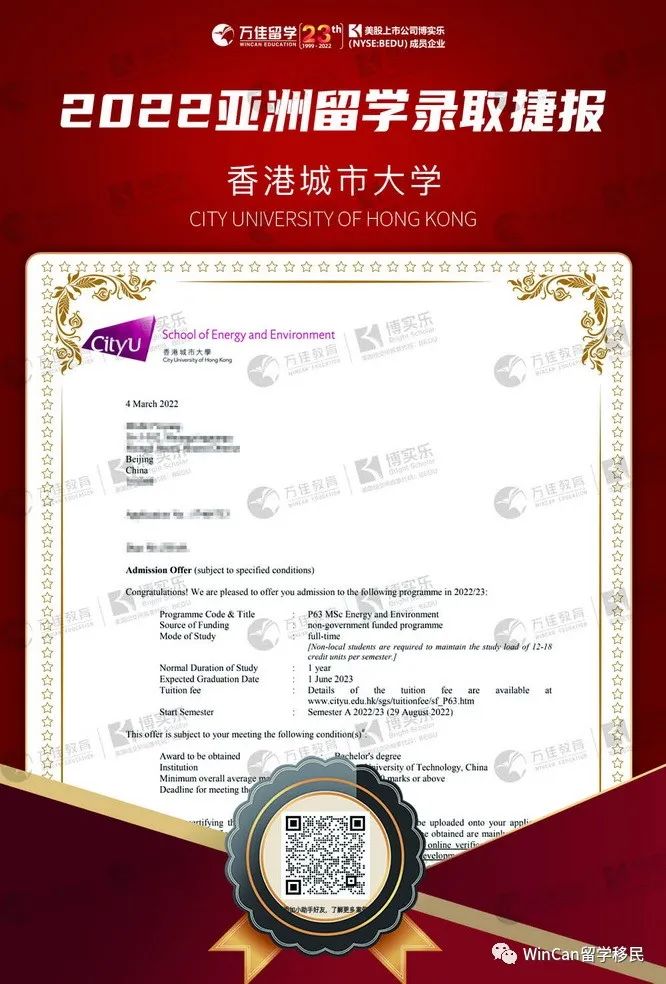 驚喜是一波接著一波,之前學(xué)生已經(jīng)被香港城市大學(xué)錄取了,這些都是對(duì)學(xué)生努力的最好回報(bào)。當(dāng)拿到錄取的那一刻、學(xué)生還不太敢相信呢,好幾天才緩過神兒來,真的是世界大學(xué)排名22的港大,夢(mèng)想照進(jìn)現(xiàn)實(shí),只要付出一切皆有可能。