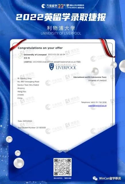 在學生錄取的院校中不乏有羅素聯(lián)盟,QS前150的優(yōu)秀學校,也正是因為學生良好地配合我們才會有如此低分高開的錄?。√旄呷硒B飛,希望學生的未來發(fā)展前景更加廣闊!