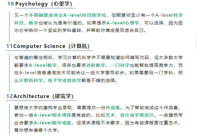 其他一些A-level學(xué)科只有申請(qǐng)?zhí)囟▽I(yè)時(shí)才有價(jià)值,例如只有當(dāng)你申請(qǐng)舞蹈、戲劇或表演藝術(shù)學(xué)位時(shí),A-level舞蹈才會(huì)被認(rèn)為有價(jià)值。