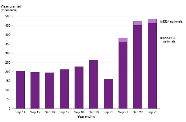 在截至2023年9月的過去一年中,英國共簽發(fā)了486,107份學(xué)生簽證,比上一年度增長了2%,但相比新冠爆發(fā)前(截至2019年9月的一年)則增長了86%!英國留學(xué)