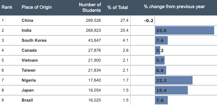 中國學(xué)生人數(shù):7455