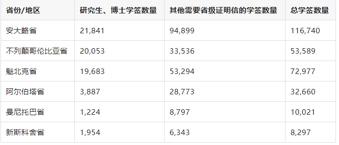 加拿大省份與地區(qū)的留學簽證分配