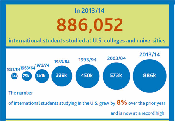 年度8%的增長, 全美留學生人數(shù)為886,052