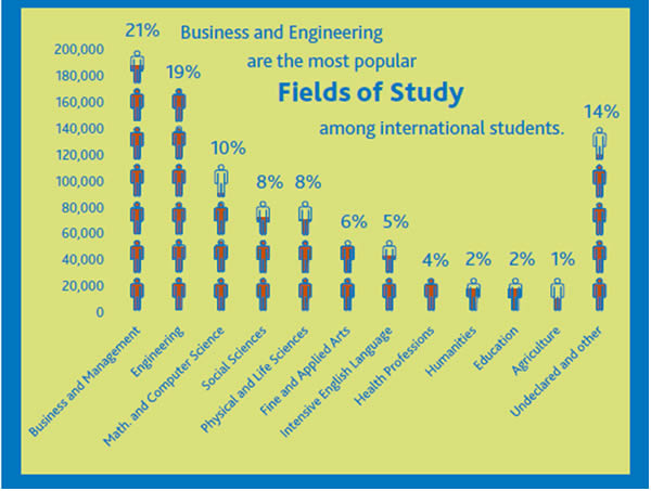 國際學生最鐘愛的專業(yè)是商科和工程,40%的學生選擇